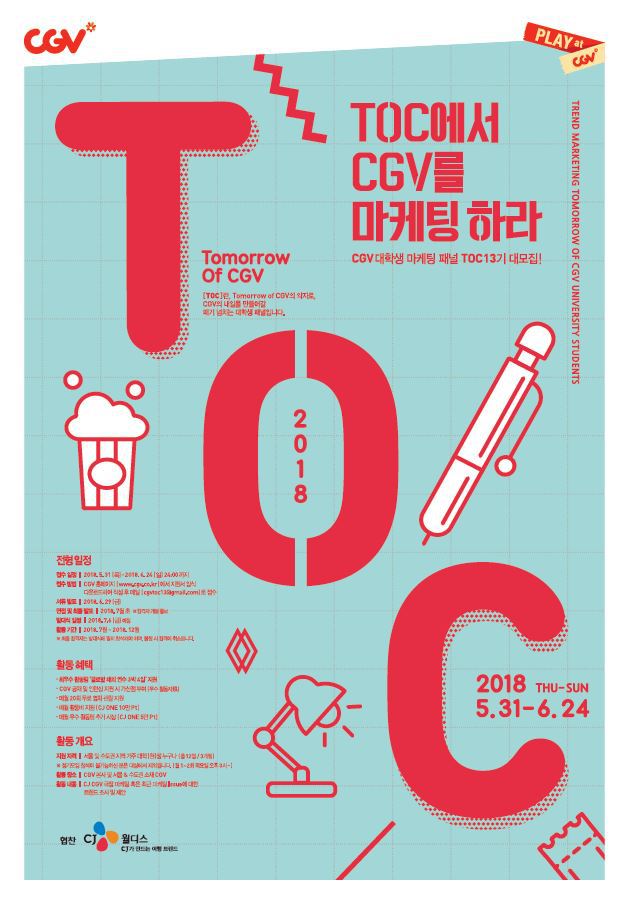 CGV T.O.C 13기 [Tomorrow of CGV의 약자로,CGV의 내일을 만들어갈 패기 넘치는 대학생 패널]