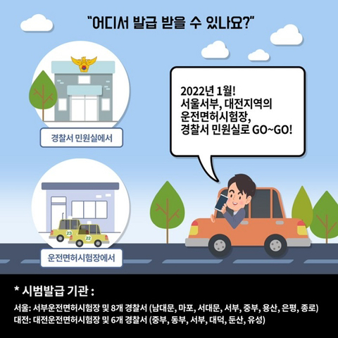 * 모바일 운전면허증은 시범 기간 동안 서울 서부, 대전지역 운전면허시험장과 관할 경찰서 민원실에서 발급 받으실 수 있습니다.