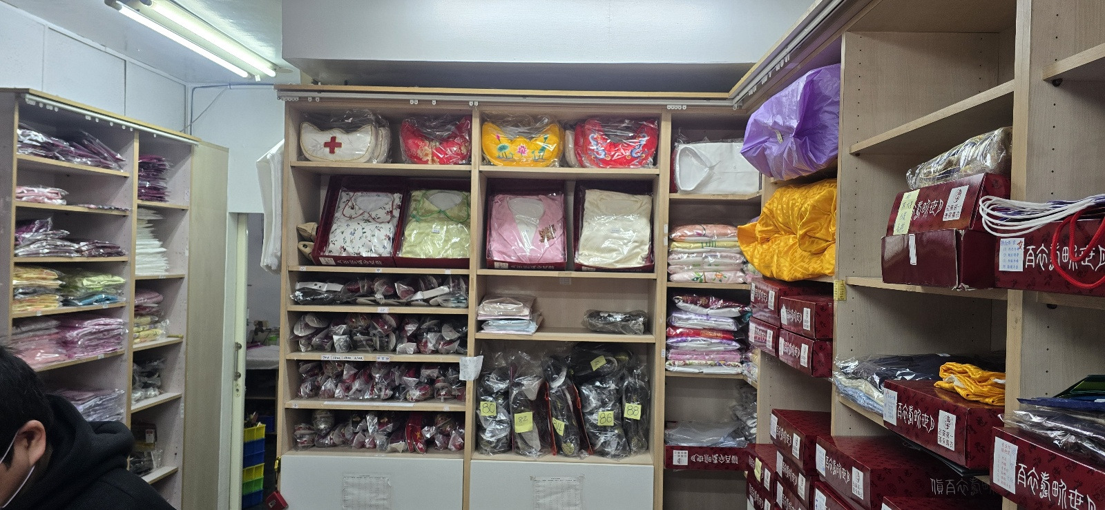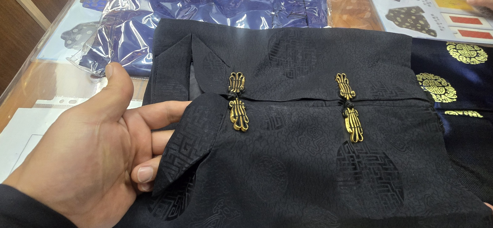 수의 품목은 남자 수의는 치파오, 중국식 긴 옷, 바지, 속바지, 면 이불, 연꽃 이불, 신발, 베개, 모자로 구성이 되었습니다.