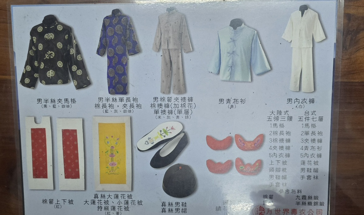 *대만 전통 수의 구성품은 한국의 전통 수의 구성품보다는 아이템이 비교적 적었습니다.