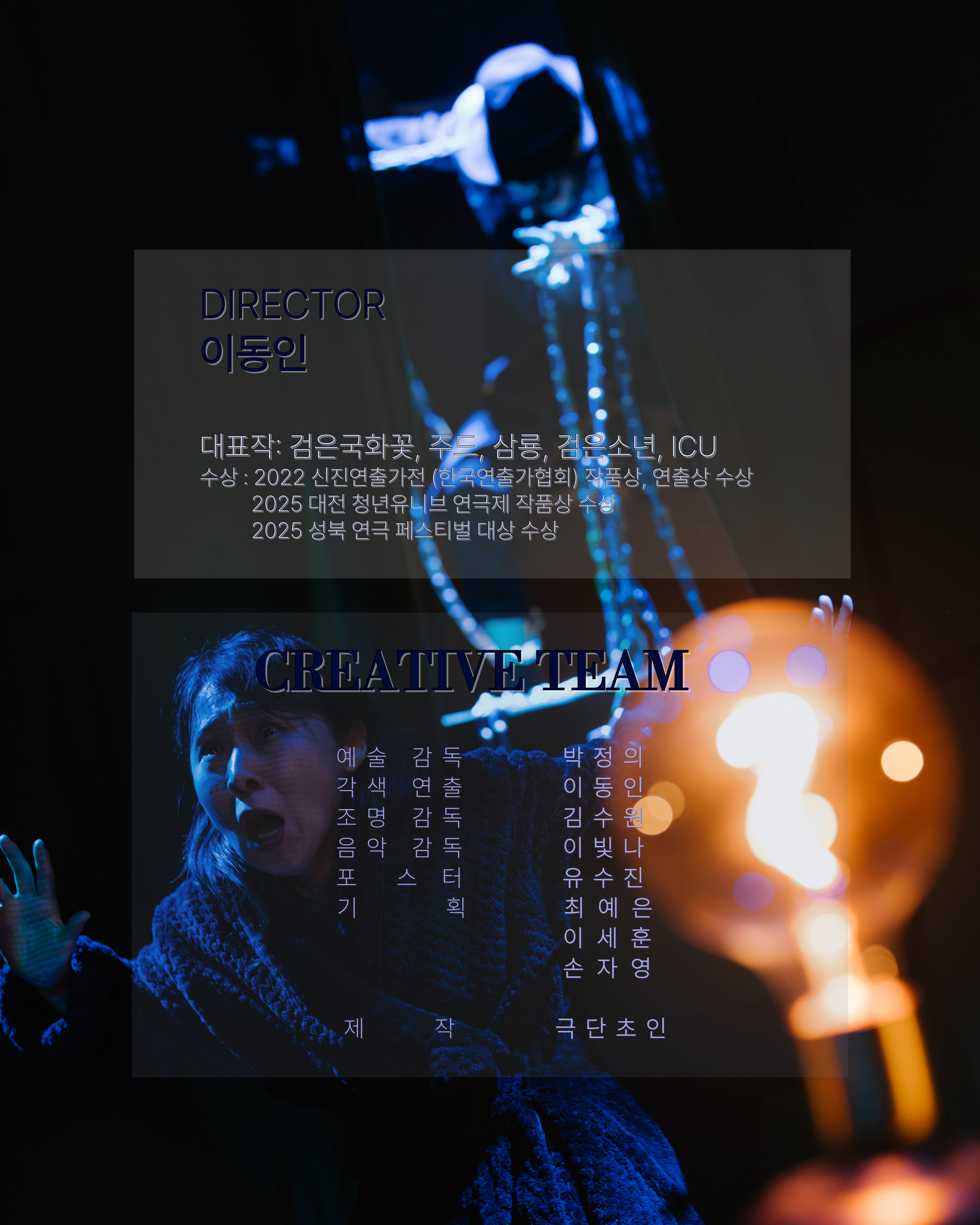 2003년 창단 후 꾸준히 연극무대만의 특별한 언어를 만드는데 집중해 온 극단 초인의 작업은 미디어 매체와는 다른 연극만의 표현 방식과 상상력을 찾는 과정입니다. 초인은 무대라는 공간적, 시간적 제약이 오히려 더 매력적인 이미지를 제공할 수 있다는 믿음으로 새로운 무대언어 창작에 매진하고 있습니다. 초인의 배우들은 무대 위에서 연기만 하는 배우에서 벗어나 작품을 함께 창작하는 예술가로서의 자리매김을 중요시합니다.