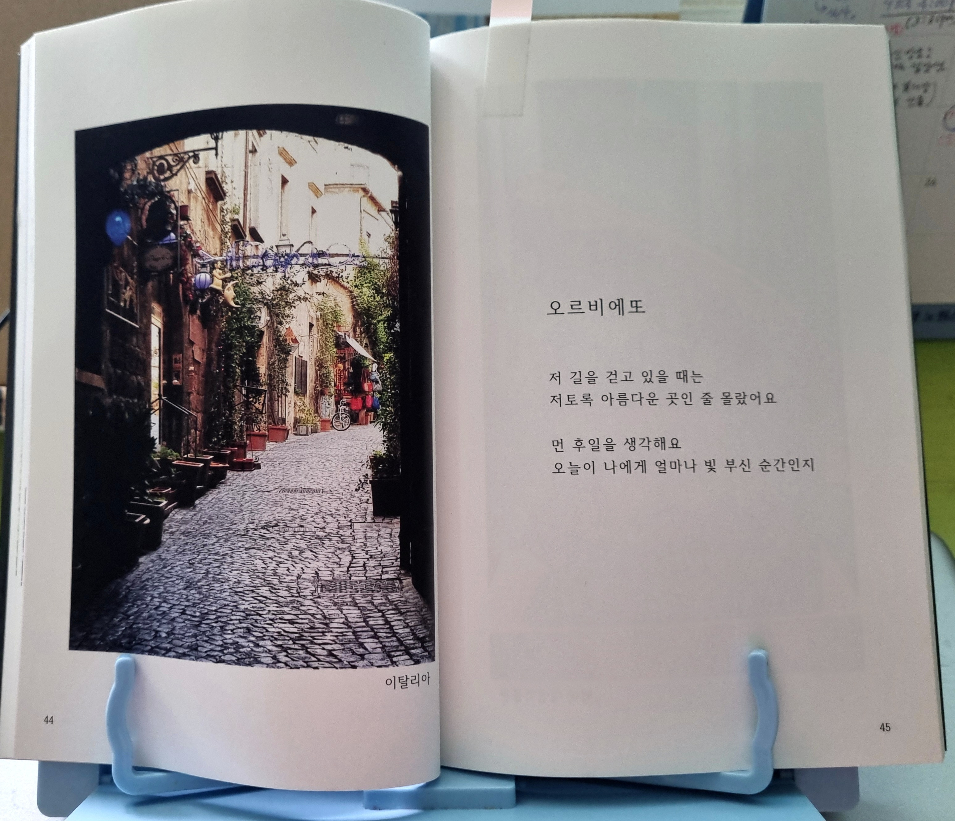 오르비에또는 작은 도시라서 놓치기 쉽지만 절벽으로 둘러쌓인 천연 요새 위에 세워진 도시로, 낭만적이고 아름다운 도시다. 화자는 이탈리아의 화려하고 역사적인 큰 도시들도 다 돌아보았을텐데 『여행 디카시』에서는 오르비에또를 인상 깊게 등장시켰다.