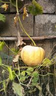 담장에 매달린 호박 한 덩이만 애호박에서 늙은 호박으로