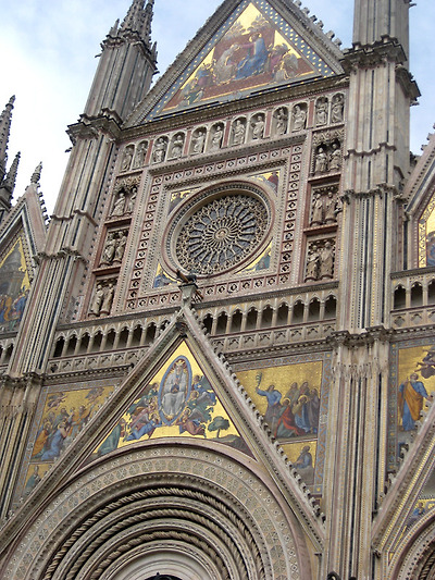 오르비에토 대성당은 이탈리아 고딕의 대표적 건축으로 1290년에서 1330년 사이에 세워졌다. 시에나성당에서 암시받은 R.마이타니가 설계한