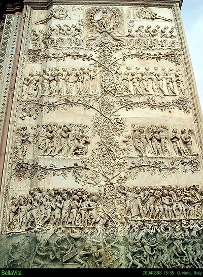 벽화 못지않게 훌륭한 작품이라는 인상을 받았다. 이 부조를 만든 로렌조 마이타니(Lorenzo Maitani; 1310~1330)는