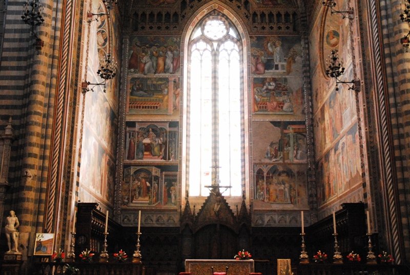 의 내부는 프라안젤리코(Fra Angelico)와 루카 시뇨렐리(Luca Signoreli)의 프레스코화가 그려져 있다. 주교관저와 포폴로 궁전, 파피
