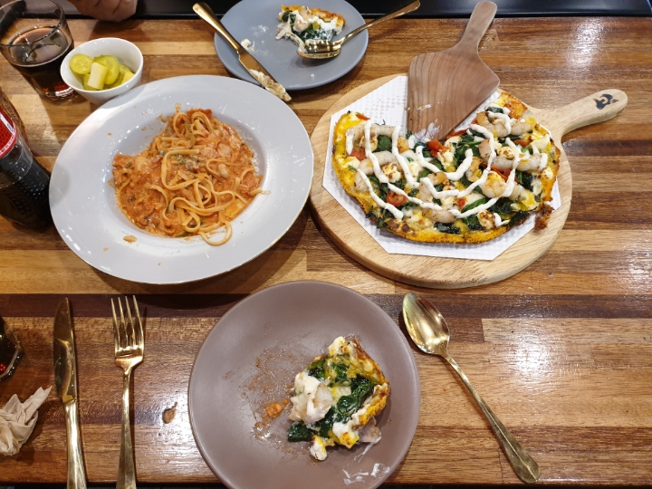 댓글님의 가게는 저의 친가에서 뛰어내리면 코앞에 위치하고 있었습니다ㅎ 피자가 고급지고 디게 맛있었어요 위치는 대구시 수성구 소재@@@@@ 입니다 가까이 계시는 분들이나 피자즐기시는 분들께 강추합니다 후회 안하실꺼에요 자세한 문의는 방송을 통해 댓글님께 문의주세요ㅎ 댓글님은 식후라 자투리님과 둘이서 맛있게먹고 세명이 앉아 본격적인 까꿍프로 뒷담화와 향후 저격방향등을 논의했습니다ㅋㅋㅋ 바둑관련 이야기보다는 일상의 대화가 대다수였어요ㅎ 늦은점심이었는데 밖은 이미 해가 지고 어둡더라고요ㅎ 댓글님은 주말이 피크인지라 가게에 남으시고 자투리성님과 숙소에 짐을 풀고 소주한잔하러 2차로이동했습니다~~~~~