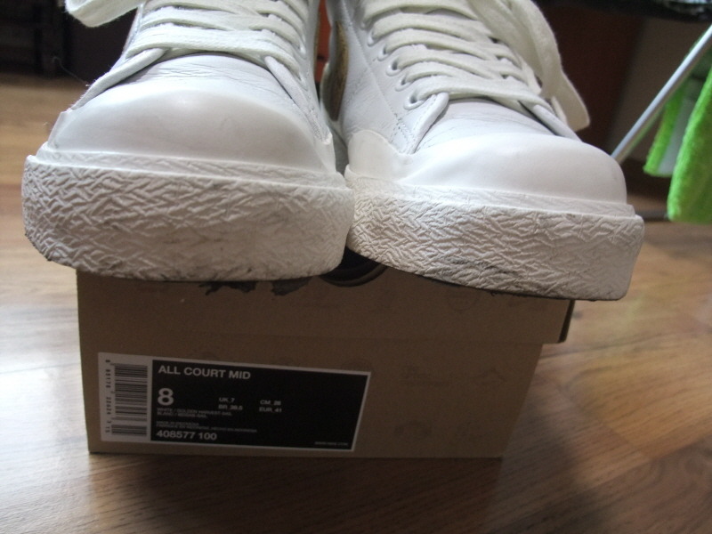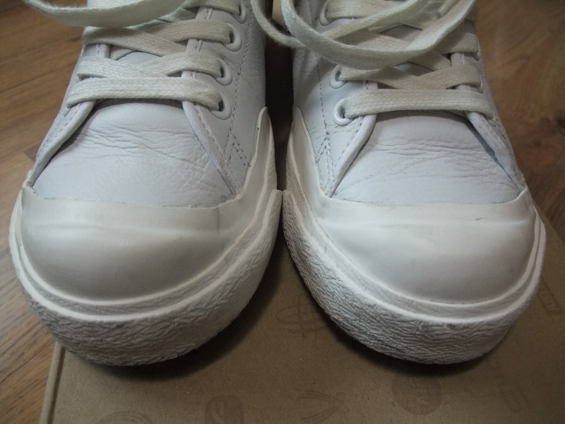 밑창부분에 전 판매자분께서 슈구붙이고 판매하신거 신고다녀서 뒷쪽과 앞쪽에 슈구칠이 되어있습니다. 착용으로 인해 닳은 부분도 있습니다.