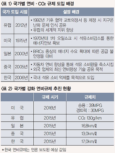 미국의 경우 경기침체와 더불어 연비 규제의 완화 움직임을 보였으나, 오바마 정부 출범 이후 더욱 강화된 연비 규제안을 추진하고 있으며, 우리나라에서도‘녹색성장기본법’에 근거하여 미국과 유럽 등 선진국 수준의 강화된 연비 규제 제정이 검토되고 있다(시장특성을 감안할 때 세계에서 가장 강력한 연비 규제 도입이 예상된다). 따라서, 연비 향상은 자동차 제조사들에게는 제품의 한가지 상품성 개선이 아닌 매우 절박한 문제가 되고 있다.