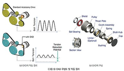 OAD(Over-running Alternator Decoupler)시스템은 알터네이터의 진동 감쇠를 통한 벨트장력 저감을 유도하여 벨트 동력 손실을 저감한다. 쿨링시스템의 열손실 최적화와 워터펌프 구동력 손실 저감을 위한 전자식 워터펌프나 클러치 워터펌프 또한 이미 양산에 적용되고 있으며, 일부 제조사에서는 추가적인 개선 시스템을 양산 적용 검토 중이다.