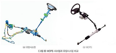 엔진 부가장치의 소모 에너지를 저감하기 위해 가장 널리 적용되고 있는 기술은 MDPS(Motor Driven Power-Steering) 시스템이다. 기존 유압식 파워스티어링시스템은 조타하지 않는 상태(Nonsteering)에서도 기본 유압을 유지하기 위해 불필요한 동력을 소모하는 손실이 매우 큰 시스템 중 하나였다. 그러나, MDPS는 조타시에만 동력(전력)을 소비하며 구조가 유압시스템에 비해 매우 간단하여 레이아웃 측면에서도 우수하다.
