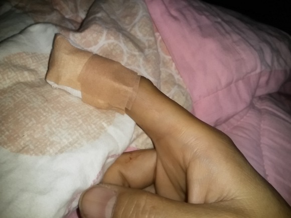 저녁입니다. 알주일만에 덧난 손가락 입니다.