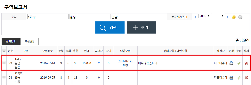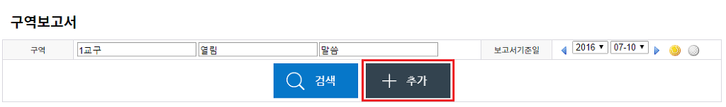 추가버튼을 누르신 후 구역보고서를 작성해주시면 되는데요,