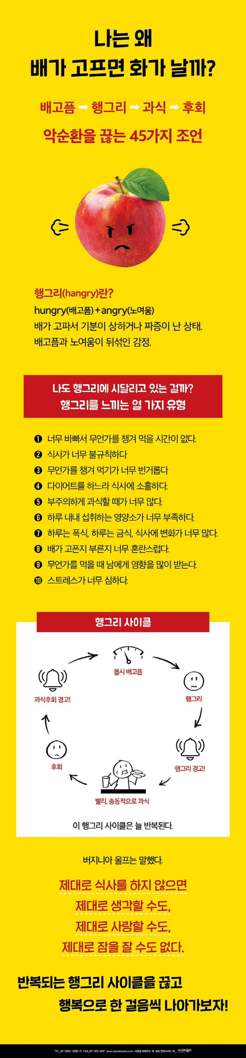 이 책과 함께라면 행그리가 닥치기 전에 미리 예방할 수 있을 것이다. 영양분을 충분히 섭취하고 정신을 맑게 유지하며 침착한 감정 상태를 유지할 수 있을 것이다. 행그리가 당신을 지배하기 전에 행그리를 관리하자!