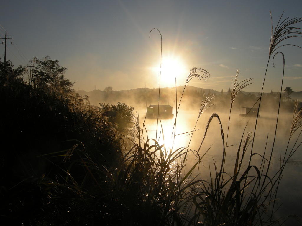 해를 부르는 물안개가 오릅니다.