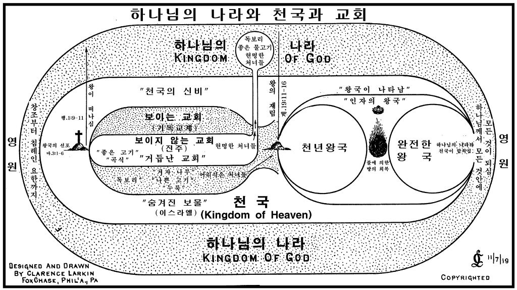 성경을 해석할 때 어떤 부분도 지금 시대를 과거나 미래의 시대에 넣지 말아야 할 것이다. 즉 "지나간" 시대나 "오는" 시대는 "왕국"과 관계가 있지만 "지금" 시대는 교회와 관계가 있다. "왕국"은 외적이며 눈에 보이는 지상의 "정치적인 조직체"이며, 이 땅 위에 세워진다. 반면에 교회는 볼 수 없는 천상의 "영적인 유기체"이며, 이 땅 위에서 끌려 올라간다(살전4:16,17) 이 "왕국"은 "세상의 기초"가 놓인 이후에 준비되었다(마25:34) "교회"는 세상의 기초를 놓으시기 "이전에" 그 분 안에서 택하셨다. 그러므로 "교회"는 "왕국"이 아니다.