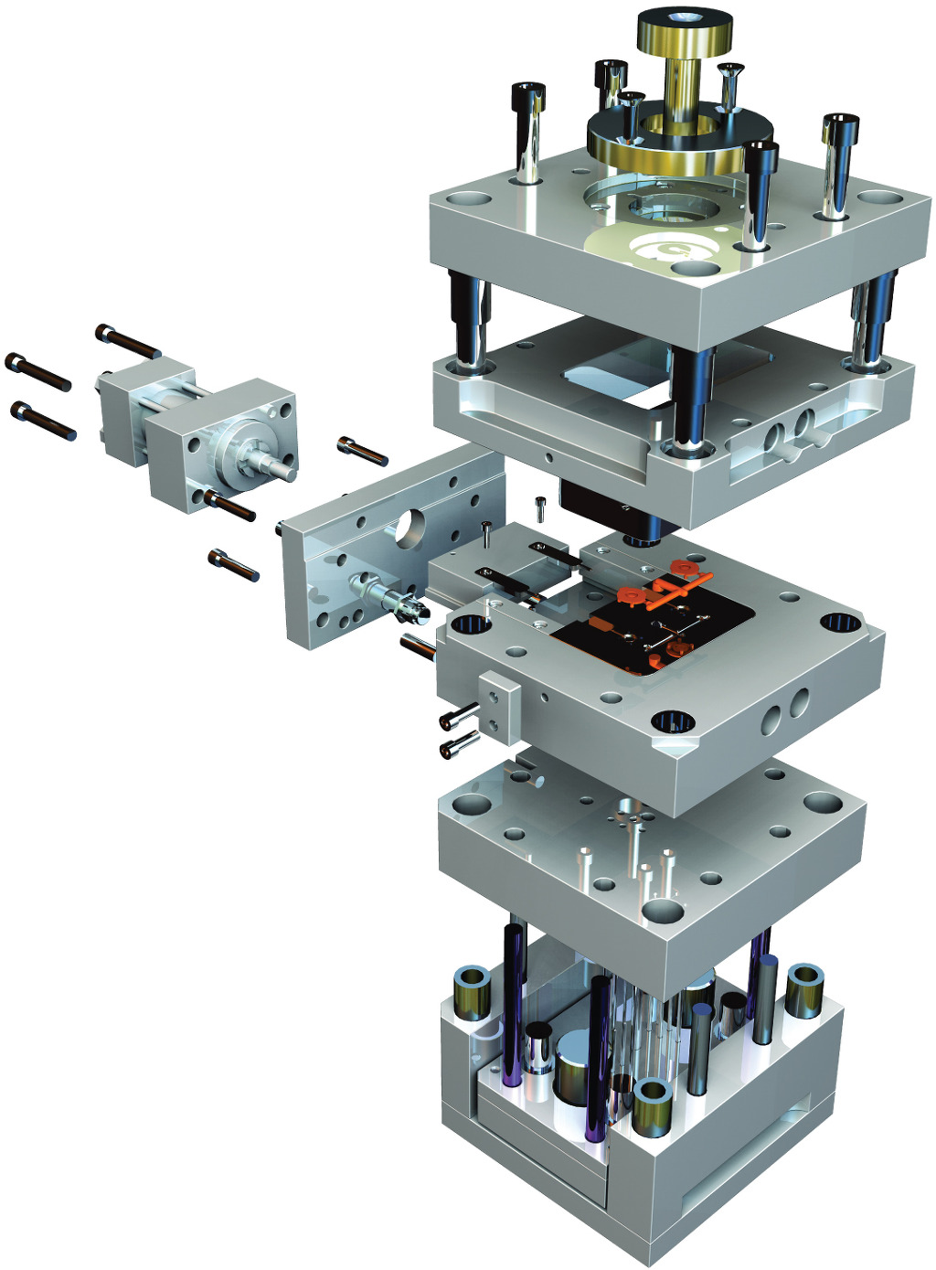 사출성형이란 플라스틱 성형법 중의 한 방법으로서, 열가소성 수지를 가열해서 유동상태로 되었을 때 금형의 공동부(空洞部)에 가입 주입하여 금형 내에서 냉각시킴으로써 금형의 공동부에 상당하는 성형품을 만드는 방법이다. 잘 건조한 수지를 사출 성형기의 호퍼(hopper)에 넣어 일정량 만큼씩 가열하여 실린더 안으로 보내어져 용융된다. 용융된 수지는 플런저(plunger)에 의하여 노즐을 거쳐 스프루(sprue), 러너, 게이트를 통해 캐비티(cavity)를 채우게 된다. 수지는 금형안에서 냉각, 고화(固化)되며, 위의 과정이 끝나면 플런저가 후퇴하고,금형이 분할면을 따라 열리면 스프루 로크핀(sprue lock pin)이 스프루를 잡아당겨 스프루 부시로부터 빠져 나오게 함과 동시에 이젝터핀(ejector pin)이 금형으로부터 성형품을 밀어내어 빠지게 한다.