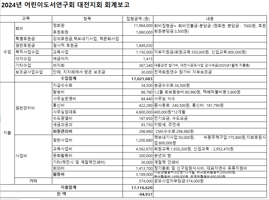 (회계공시 잔액이 마이너스라 놀라시는 회원이 있을까 우려되어 알려드립니다.)