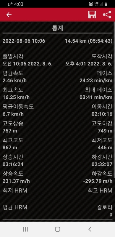 3. 산행거리 및 소요시간: 14.54km/ 5:54'