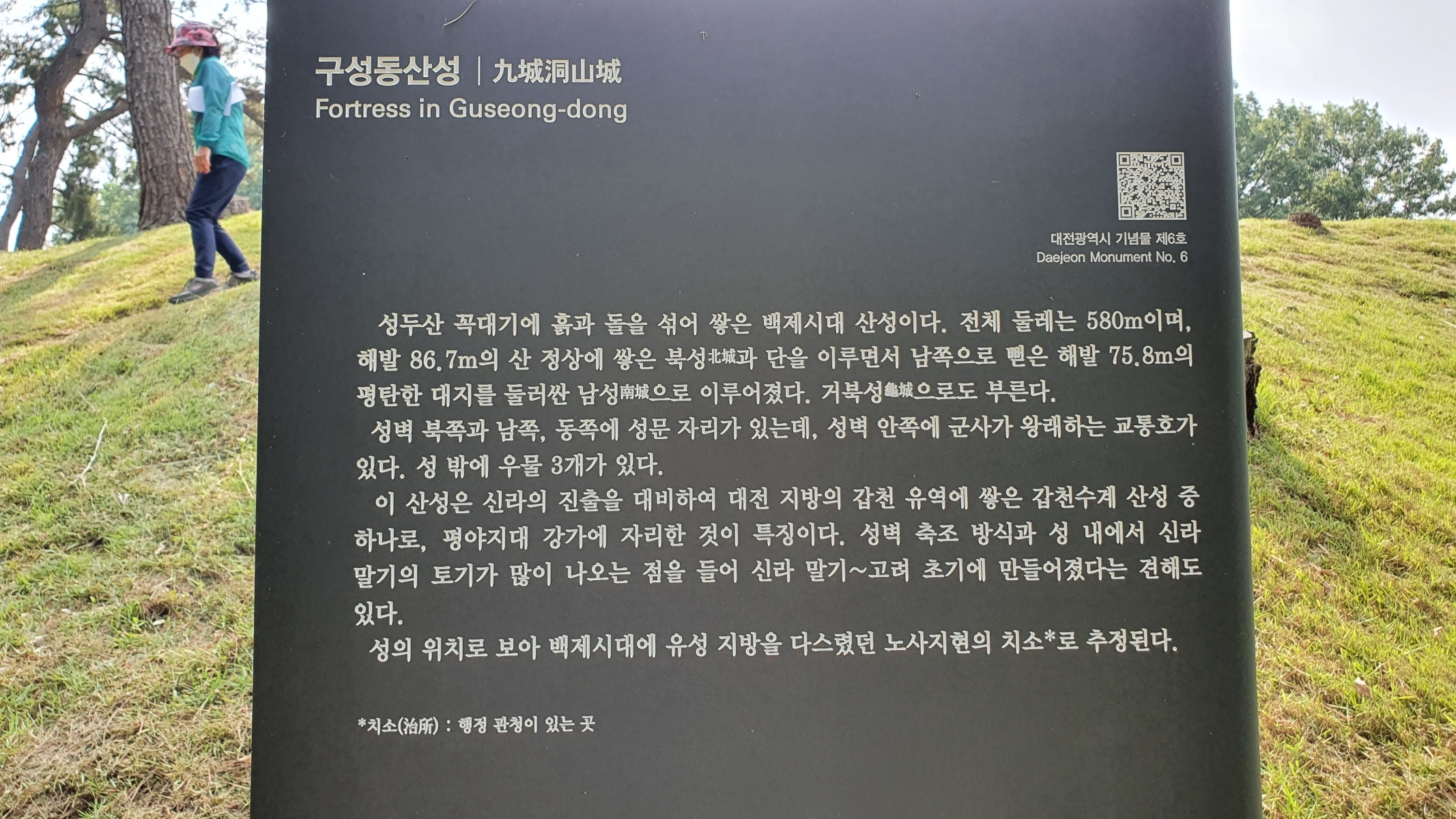 두번째로는 바로 옆의 구성동 산성을 가보았습니다. 수목제거도 하고 잔디도 잘 깎아놓아 시원한 느낌이 들었습니다. 이곳은 백제시대의 산성인데 노사지현의 치소로 비정되는 곳이라고 합니다. 갑천을 사이에 두고 월평동산성와 마주보고 있습니다. 갑천에는 상류부터 하류쪽으로 흑석동 산성, 월평동 산성, 구성동 산성, 우술성, 금고동 산성까지 5개의 산성들이 자리잡고 있어 이 일대의 중요성을 짐작하게 합니다. 구성동부터 궁동까지 이동네는 새우모양의 지세를 가지고 있고 구성동은 구석이라는 뜻을 가지고 있다 합니다.