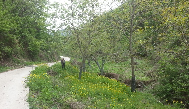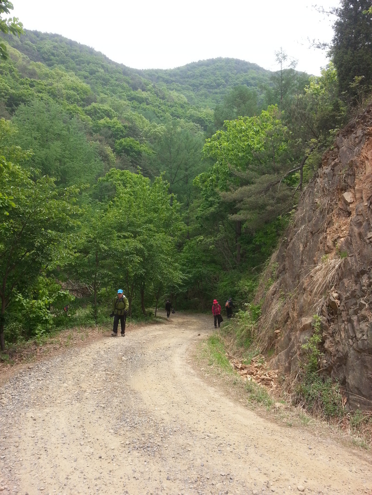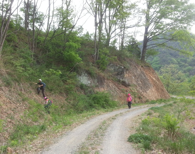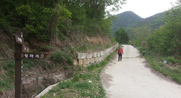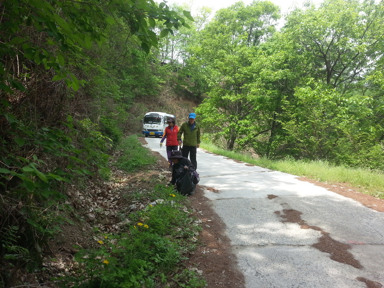 일부는 차를 타고 일부는 산나물을 뜯으며 걸어 생명강 전원마을 삼거리에 당도하니 시간은 정오를 넘었다.