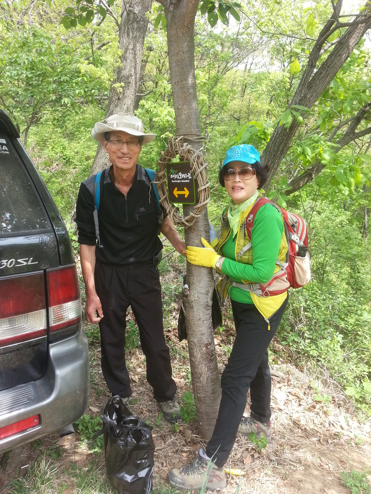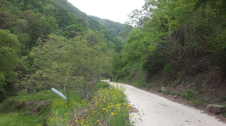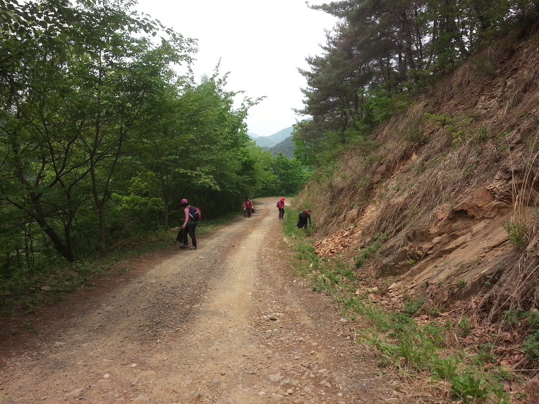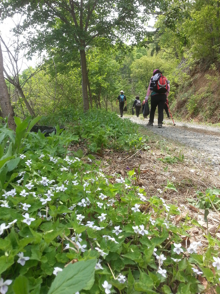 찬란한 연두빛 임도를 걷는 님들의 비닐 봉투도 꽤나 묵직 해 보인다.