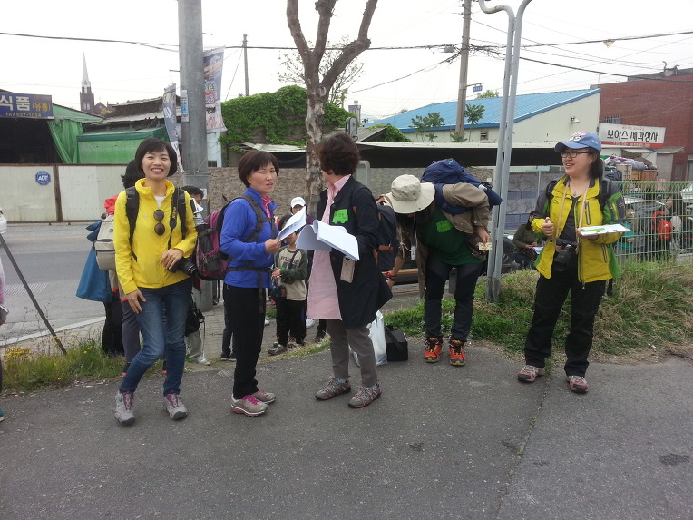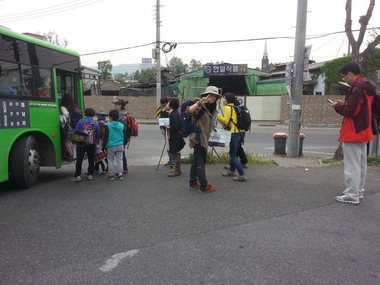 박은숙 상임이사와 김용미 이사,박미란 강사와 함께 모여서 08:55발 회남행63번 버스를 기다리고 있고