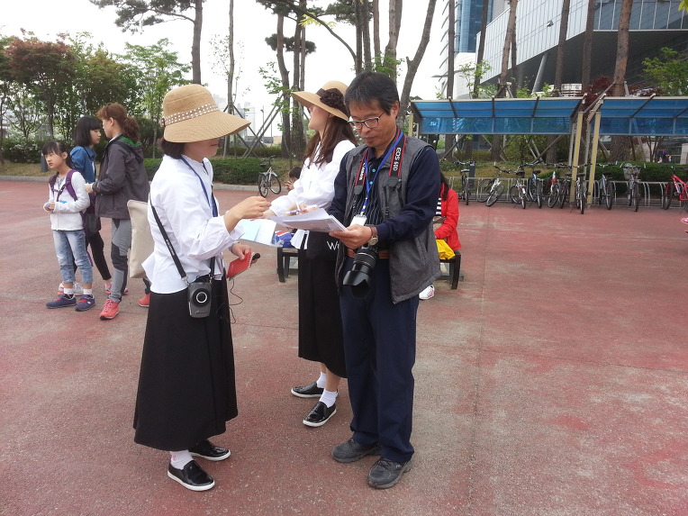 코레일 빌딩앞에서는 대전광역시가 주최하고 (사)대전문화유산울림이 주관하며 문화재청이 후원하는 "2014 생생문화재 활용사업" "소제동 보물창고 열려라 生生"의 두번째 행사인 "소제동 근대투어"를 진행하실 강춘자,김재성 이사와 신성연 강사가 참가자들을 기다리고 있다.