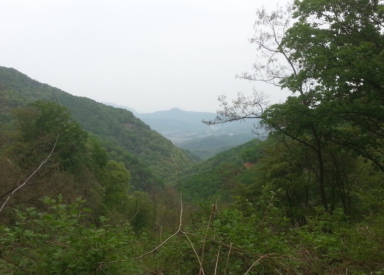 탑산이 갈림길에서 저멀리 보이는 종미리는 제12구간 푸른들 비단길로 6월에 걸을 곳이다.