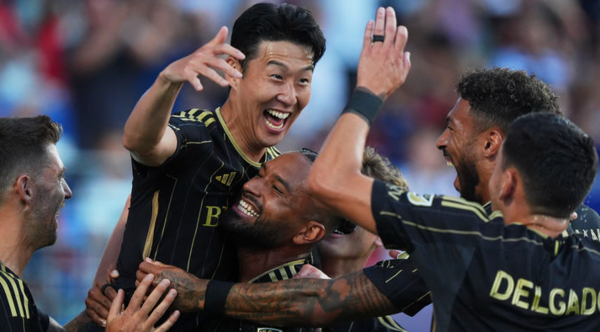 ▶손홍민이 미국프로축구(MLS) 로스앤젤레스(LA)FC로 이적한 뒤 24일(현지시간) 미국 텍사스주 댈러스의 도요타 스타디움에서 열린 댈러스와의 경기에서 데뷔 3경기 만에 1호골을 터트림.