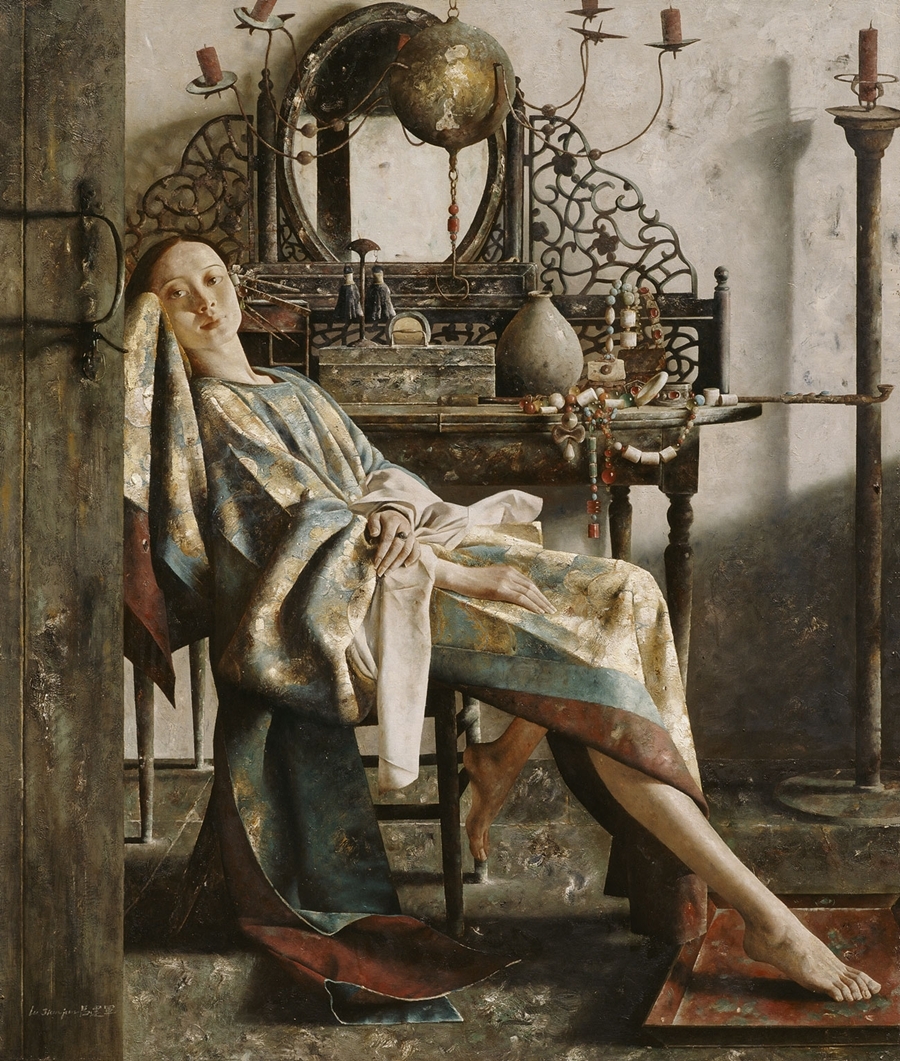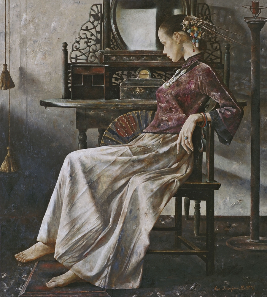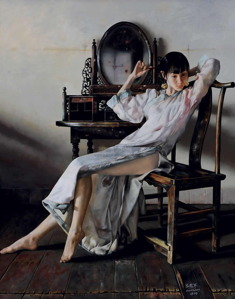 Lu Jianjun(吕建军)은 1960년생이며 중국 항주에서 태어 났습니다. 중국에서 학교를마치고 화가로서 활동을 하다가 지금은 미국에서 살고 있습니다. 중국과 미국에서 많이 활동을 하였고, 일본 홍콩등지 에서도 수상한 경력이 있습니다. 주로 청나라 후반의 옷차림을 한 여인들이 의자에 앉아 있는 고전적인 스타일의 그림이 많습니다. |