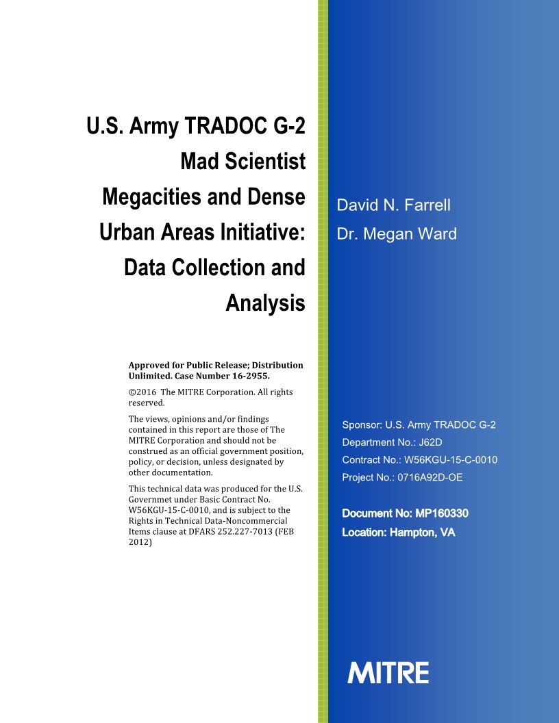 두 육군 참모총장의 관심으로 인해 미 육군은 관련 연구를 진행했고, 2014년 6월 미 육군 전략연구단에서 ‘메가시티와 미 육군 - 복잡하고 불확실한 미래에 대한 준비’라는 제목의 연구 보고서를 발간했다.(https://apps.dtic.mil/sti/pdfs/ADA608826.pdf)
