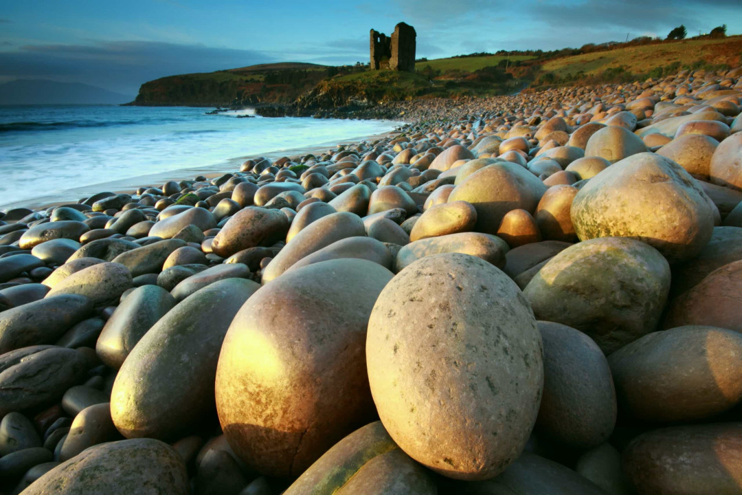 미나드 캐슬 (사진)과 슬리 헤드 및 던모어 헤드 사이에 있는 해변은