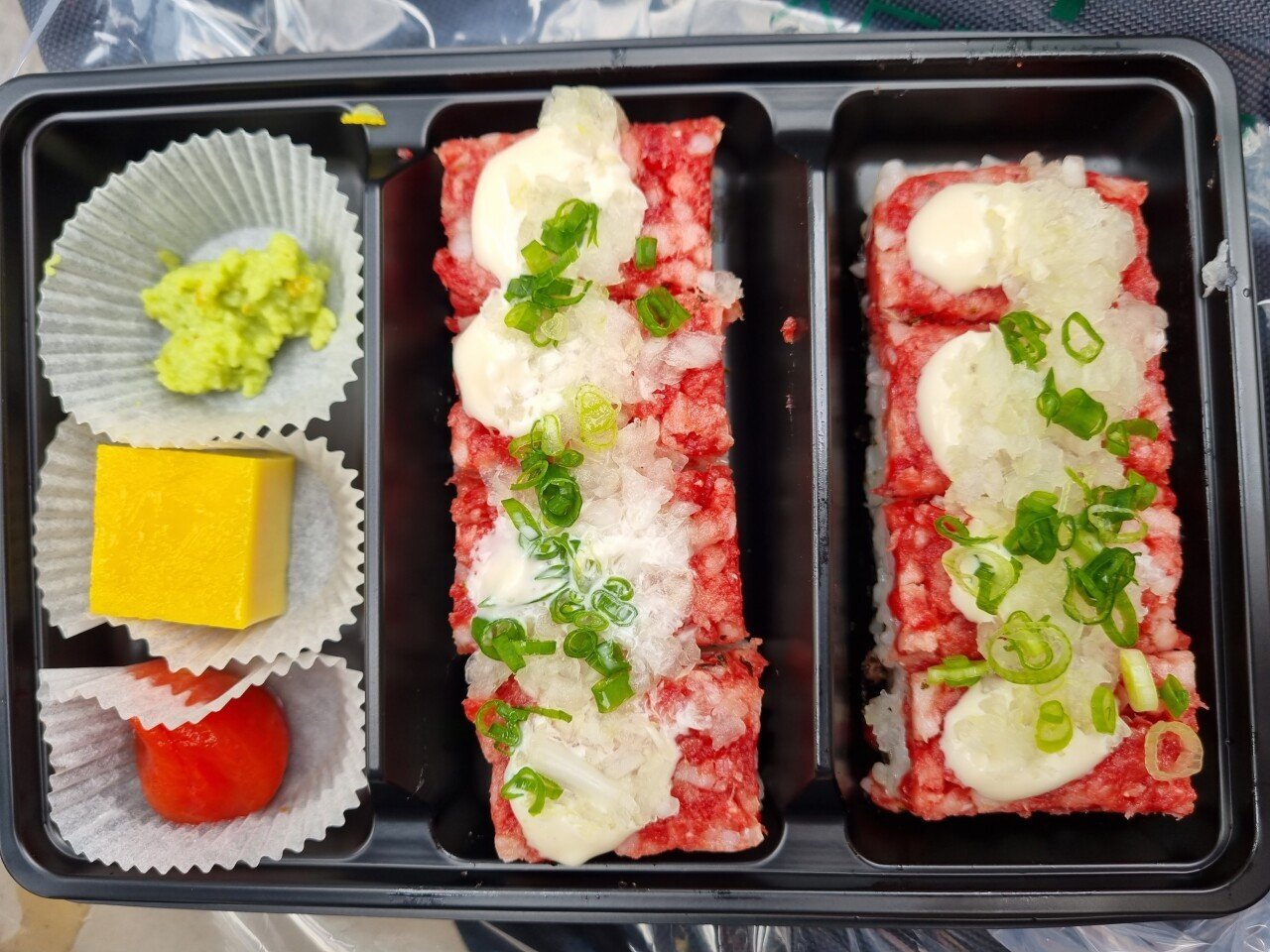 음식은 말고기 초밥과 말고기 소시지 두가지로