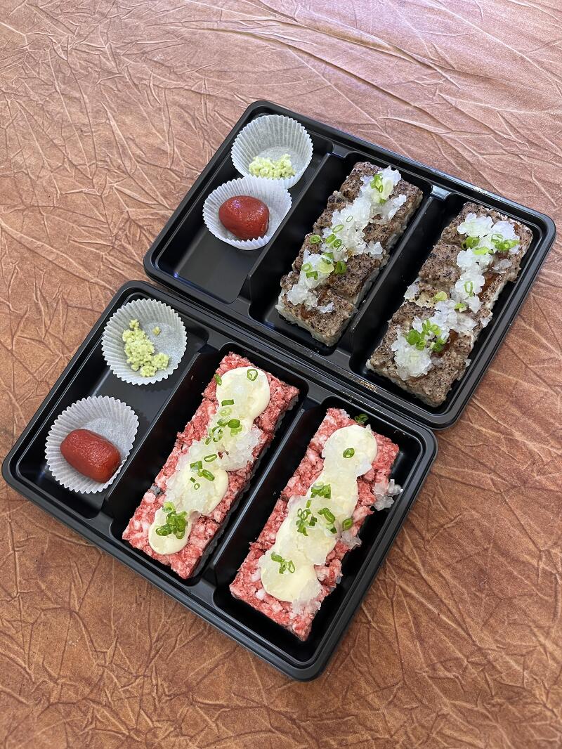 말고기 육즙 소시지 9,900원, 말불고기 부각초밥 9,500원