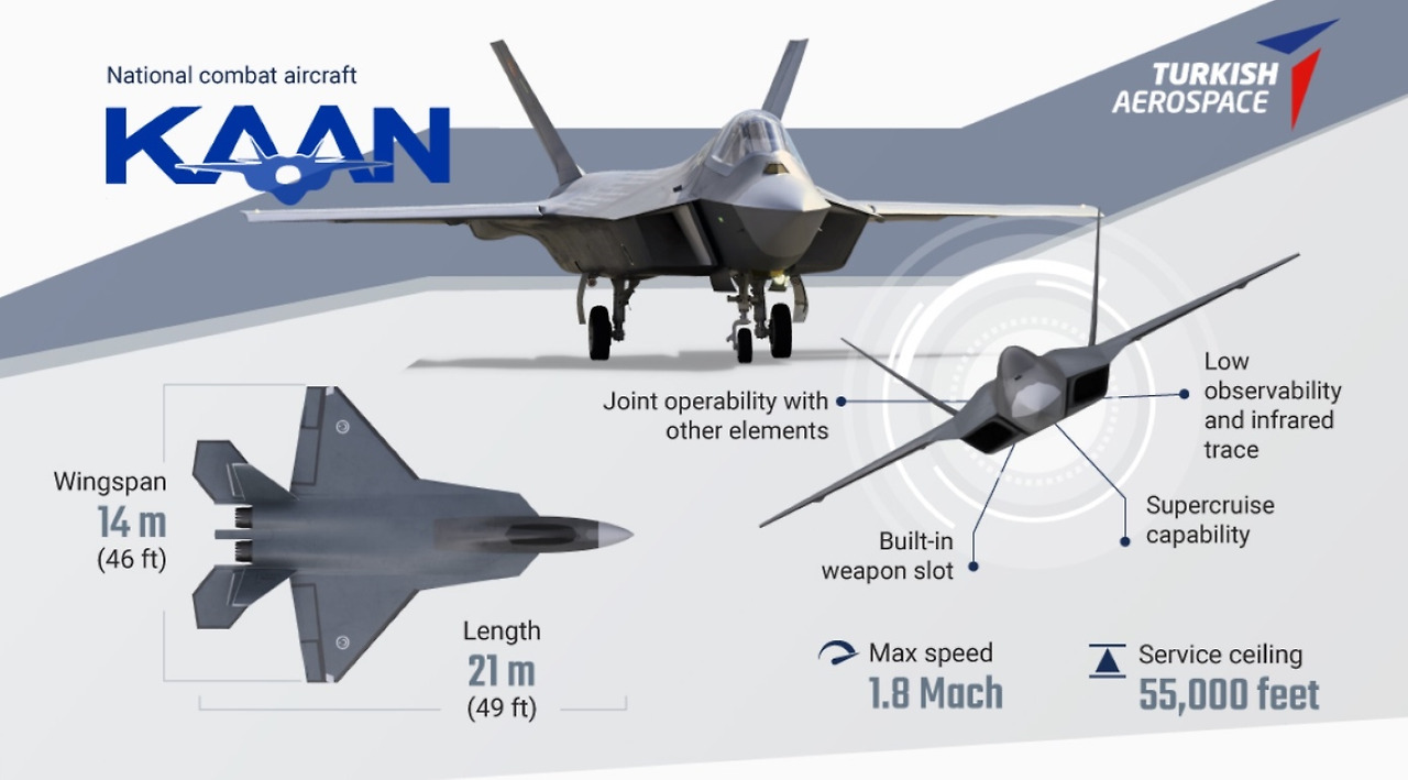 튀르키예 Kaan 전투기는 튀르키예 공군의 F-16 전투기를 대체할 차세대 전투기로 개발되고 있다.