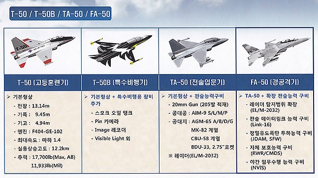 < T-50 시리즈 제원 / 이미지 제공= KAI >