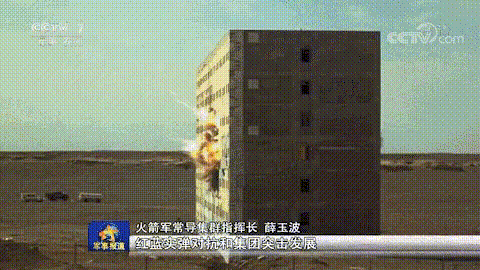 ↓ DH-10 순항미사일 탄두가 명중하여 목표건물 층이 폭파되는 모습