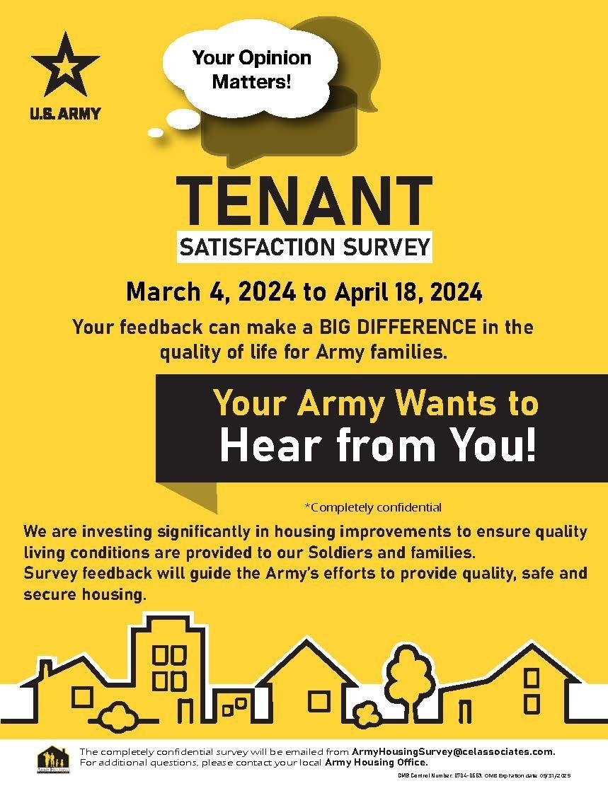 미 육군은 지난 3월부터 ‘2024 군인과 가족들 대상 정례 숙소만족도 조사’ (Tenant Satisfaction Survey)를 진행하고 있다. 육군이 아닌 외부의 중립적인 기관이 이메일 설문으로 진행하며, 부대아파트와 민간 임대아파트 등 다양한 숙소품질, 주거 서비스 및 지역사회 편의시설 등 모든 생활여건을 포함하고 있다.