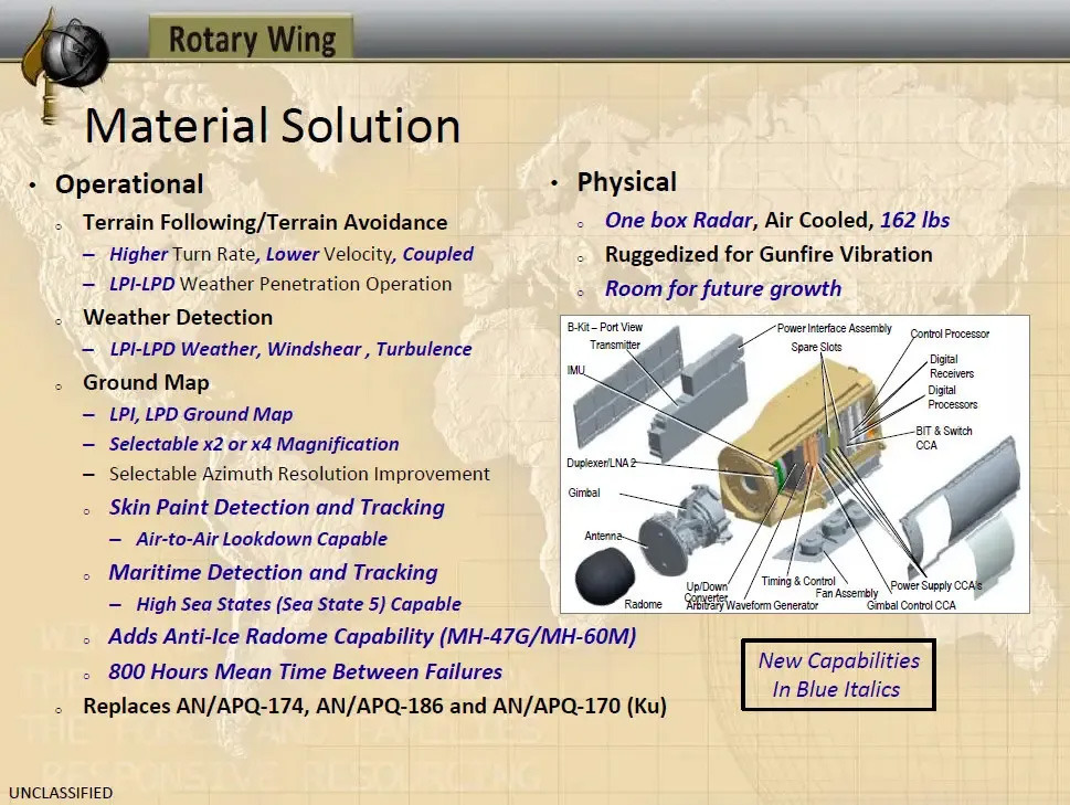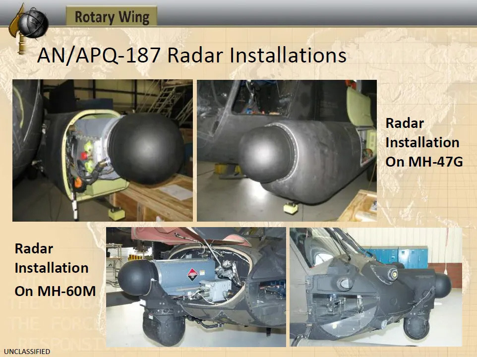 야간 저공침투 임무에 필수적인 지형 추적 레이더 AN/APQ-187 가 장착되어 있습니다.