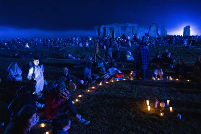 수천 명이 밤새 머물며 힐 스톤 뒤로 떠오르는 일출을 지켜본다.