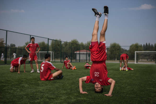 학생들이 평양의 한 교실에 앉아 시험을 치르고 있고,