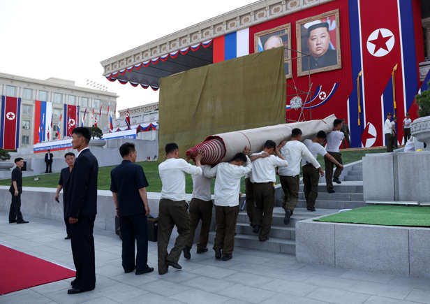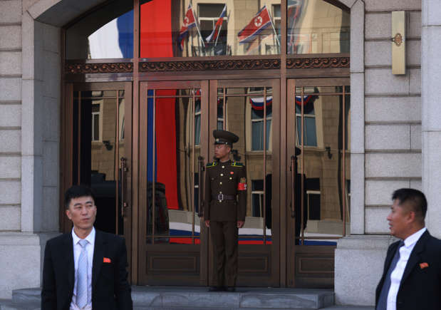 푸틴 대통령과 김정은의 사진으로 장식되었다.