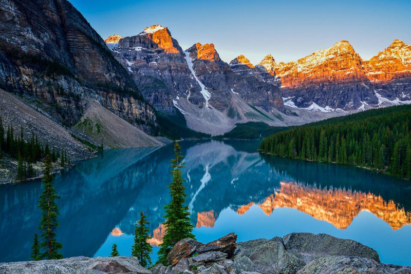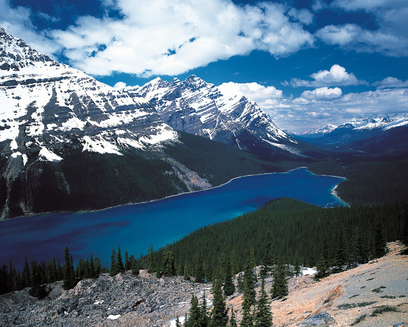 캐나다 앨버타주 밴프, 록키산맥에는 아름답고 신기한 자연 호수들이 많습니다만 그중 대표적인 호수가 레이크 루이스(Lake Louise) 호수입니다. 빙하호수로 유네스코가 정한 세계 10대 절경 중 하나이며 BBC가 선정한 세계 베스트 여행지11위에 선정됐습니다. 이 호수는 레이크 루이스 햄릿과 횡단 캐나다 1번 고속도로 서쪽으로 5km 떨어진 곳에 위치하고 있으며, 빅토리아 여왕의 딸인 루이스 캐롤라인 (Louise Caroline Alberta, 1848-1939)의 이름을 따서 지어졌으며 1878년부터 1883년까지 캐나다 주지사 였던 론 후작의 아내입니다. 에메랄드 색갈의 물은 빙하의 용융물에 의해 호수로 운반 된 암석 가루에서 나오는 색입니다. 이 호수의 표면은 0.8 km2이며 3km 길이로 Louise Creek 에서 Bow River 로 유출됩니다. 페어몬트의 샤토 레이크 루이스(Chateau Lake Louise)는 캐나다의 그랜드 철도 호텔 중 하나로서 호수의 동부 해안에 위치하며, 20 세기 초반에 지은 럭셔리 리조트 호텔입니다. 아래 사진들은 루이스 호수뿐 아니라 밴프 근처의 모레인 호수등 여러 호수들의 사진입니다. |