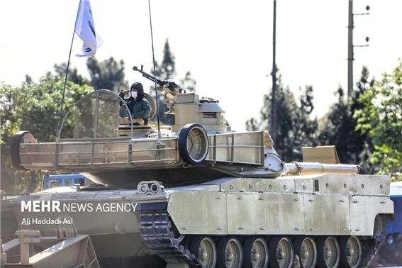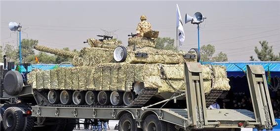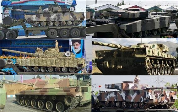 이란의 전차들은 특이하게도 전차 트레일러에 실려서 운송 중에도 승무원이 전차에 탑승해 있다. <출처 : serge@twitter>