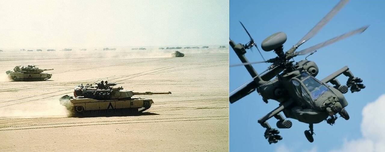 걸프전 당시 미군의 M1 전차와 아파치 공격헬기는 일방적으로 이라크의 소련제 군사 장비를 격파하면서 전력의 질적 격차가 무엇인지를 보여줬다. <출처: Public Domain>