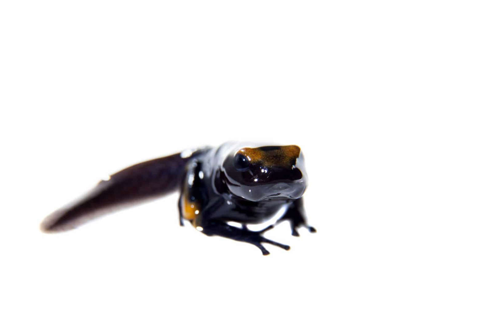 염색 독화살개구리들은 작은 올챙이들을