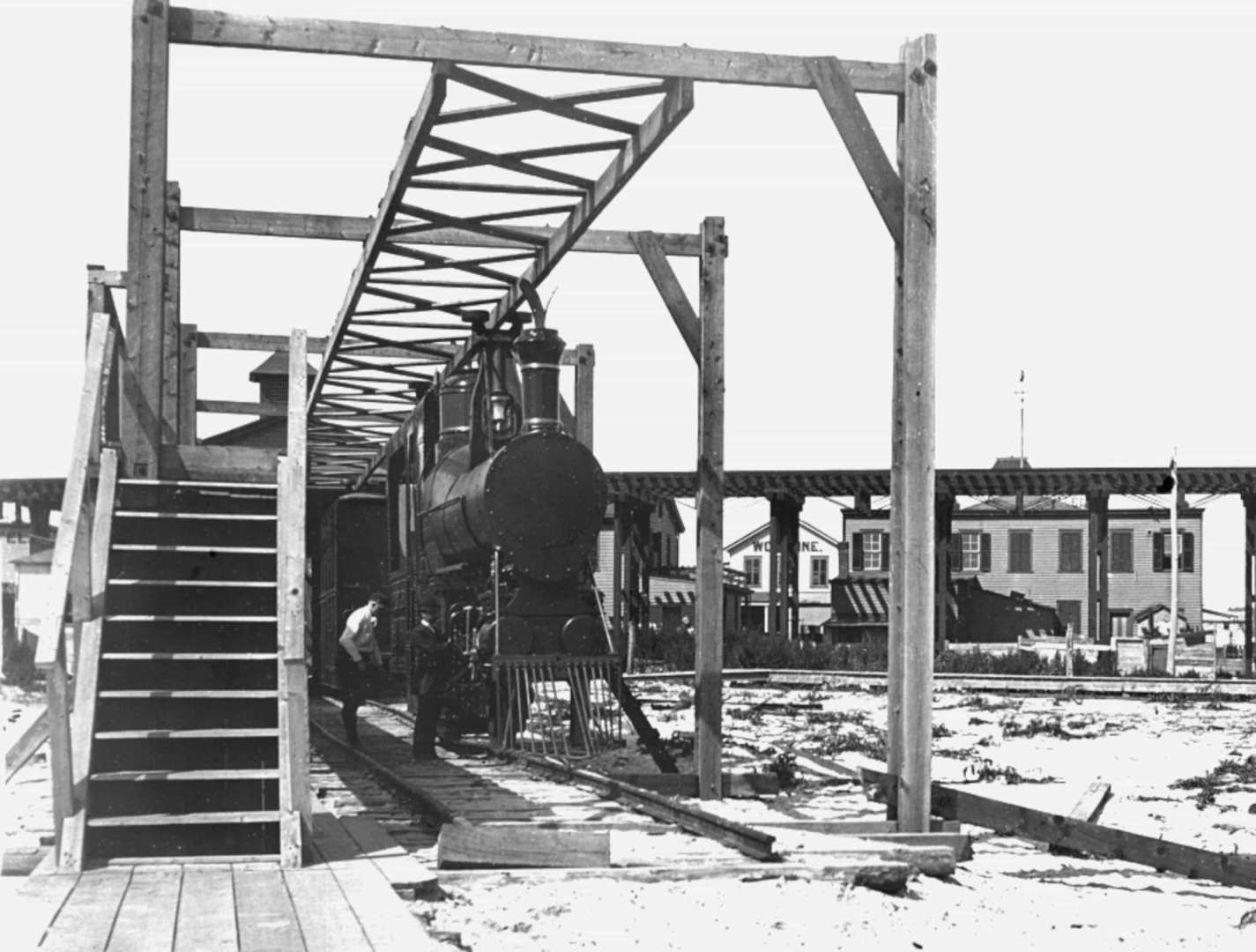1890년 여름, 뉴욕 브루클린에서 여러 증기 기관차와