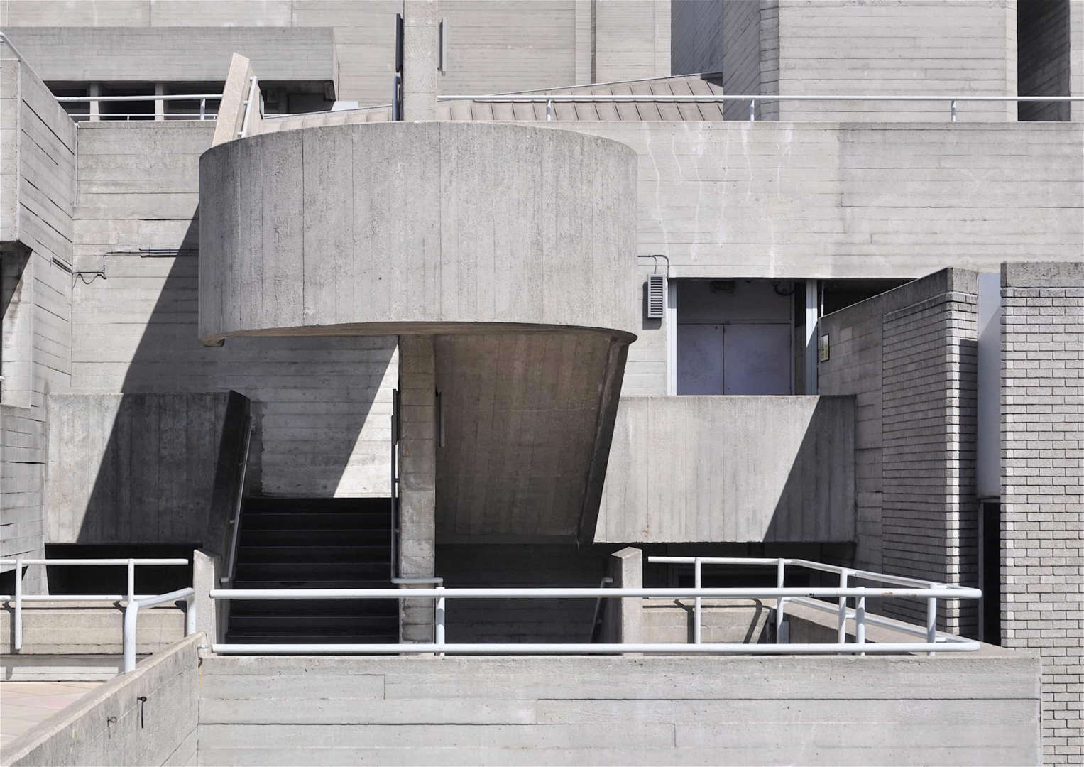 런던의 국립 극장은 넓게 펼쳐진 브루탈리즘의 복합 건물이며,