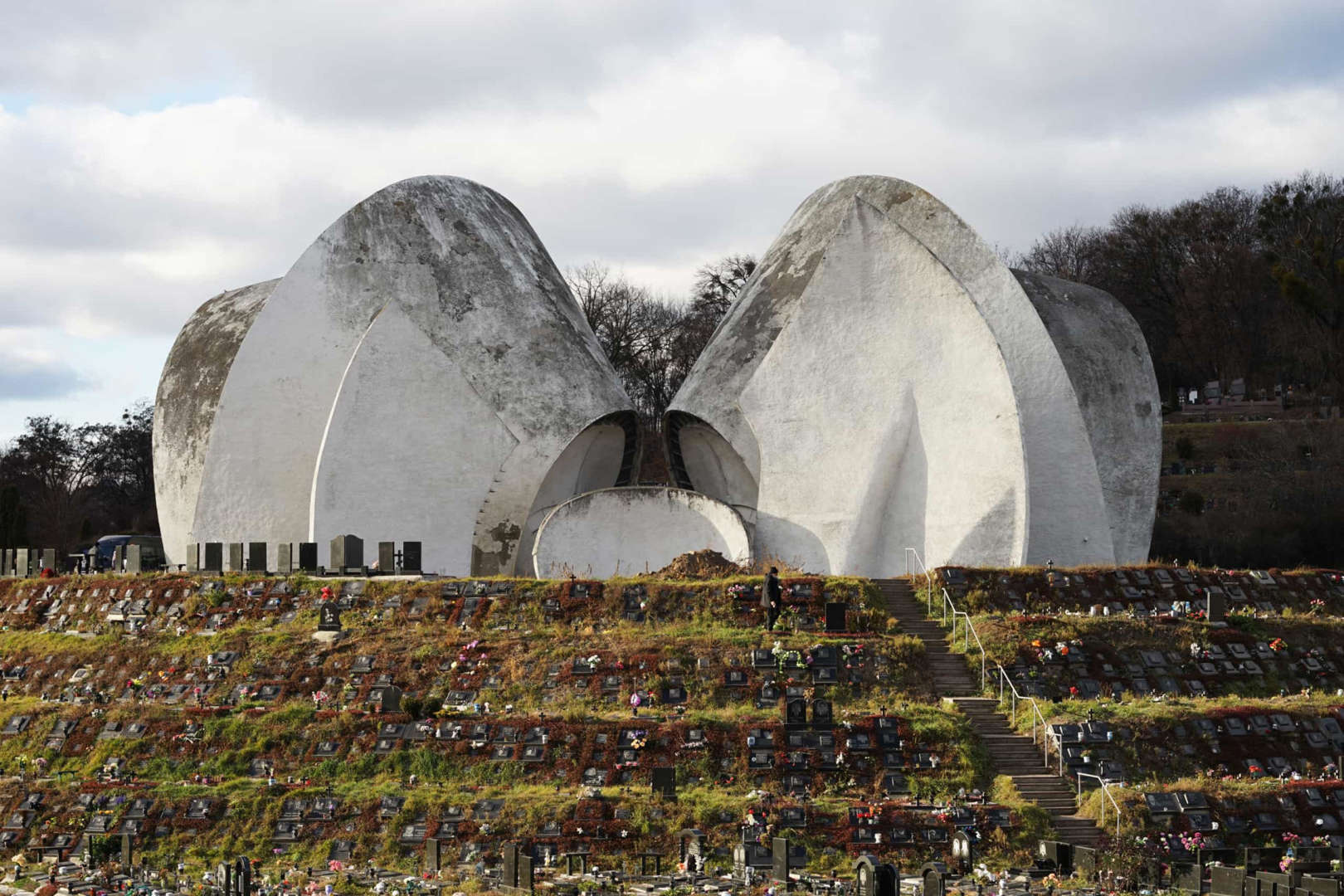 소련 시절 화장장은 하얀 콘크리트로 지어졌고 부드러운 곡선을 접목해